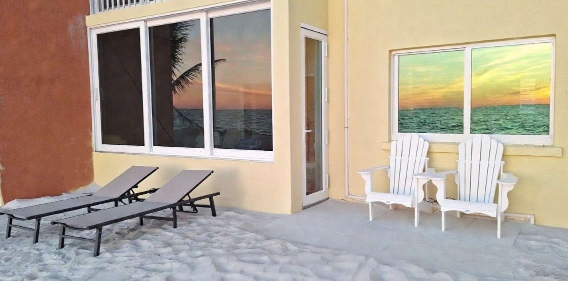 The Gulf is approximately 100 feet from your lanai, making beach days effortless—especially for families. Enjoy morning coffee while watching dolphins, kiteboarders, and seabirds, or unwind in the evening as the sun sets over the water. Sliding glass doors allow you to enjoy the Gulf breeze on the lanai while keeping the interior cool and comfortable.