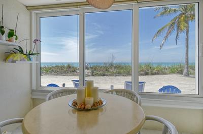 From the lanai and your private patio, you are directly on the beach where it is easy to keep an eye on the children playing, or walk down to the Gulf for a swim. Located on Turtle Beach, Siesta Key's quiet south end - this lovely Gulf front first floor unit with large washer and dryer and new living room furnishings can accommodate up to six guests. Completely stocked kitchen, beach chairs, umbrella and cooler with lots of beach toys for the children. Bring or rent a boat as you can see your boat dock from the entrance doors and can enjoy watching the fisherman. Your car will be parked near the entrance for easy load in. This unit is very comfortable for both couples that want a well equipped kitchen and easy beach and boat access, or families looking to enjoy their vacation. Just bring the sunscreen and your groceries!