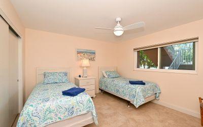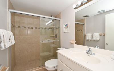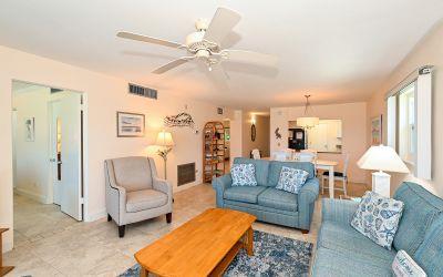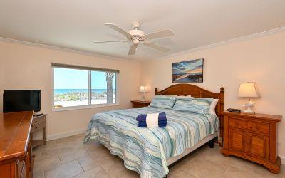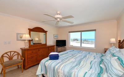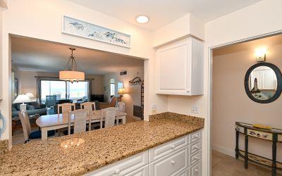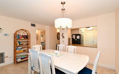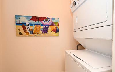 High demand upgraded first floor corner unit which sleeps 6 features a king, twins and sleeper sofa. The south end offers plenty of privacy and direct beach access. The washer and dryer is included by the kitchen. Unit has comfortable furnishings for families or couples and lovely tile throughout.