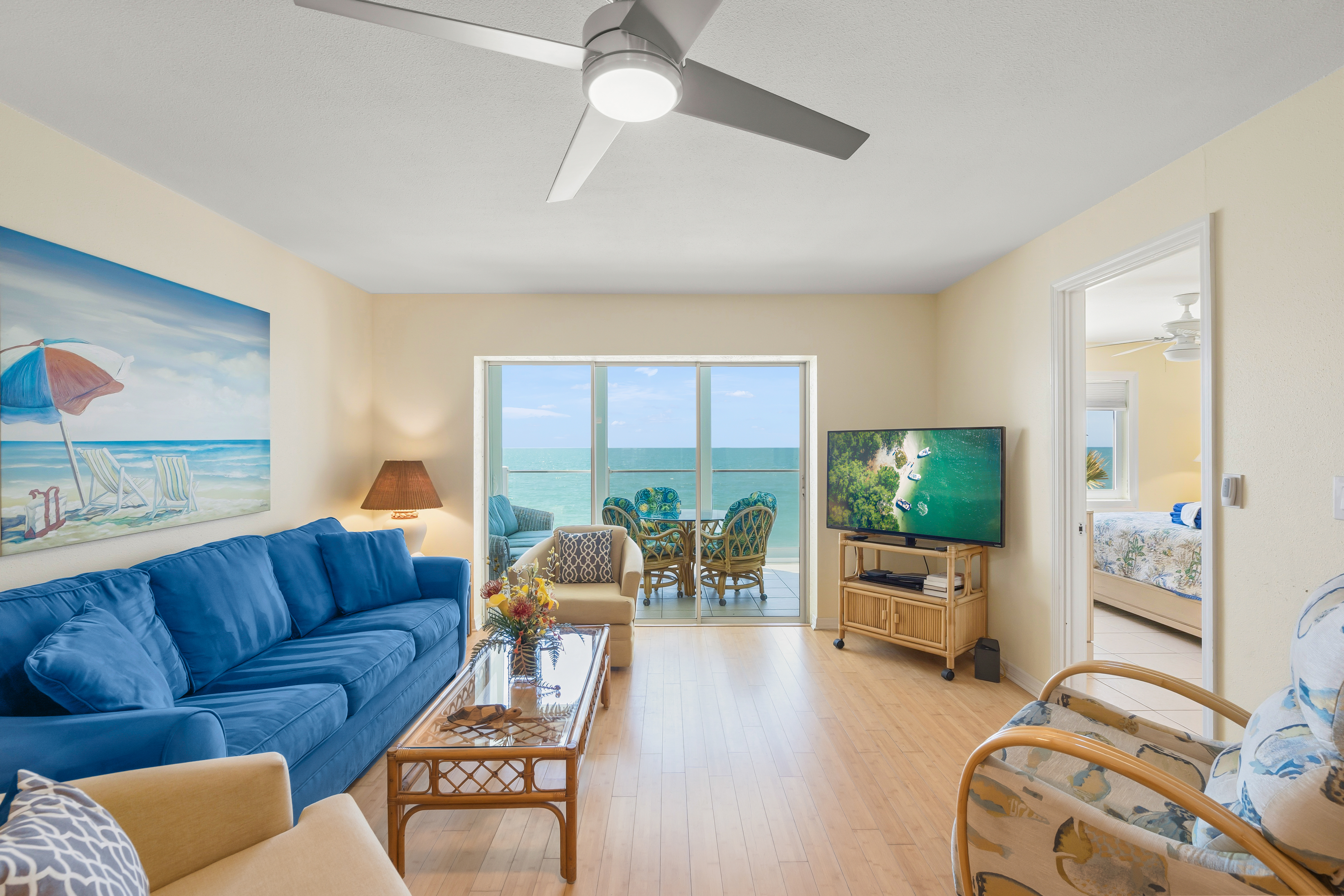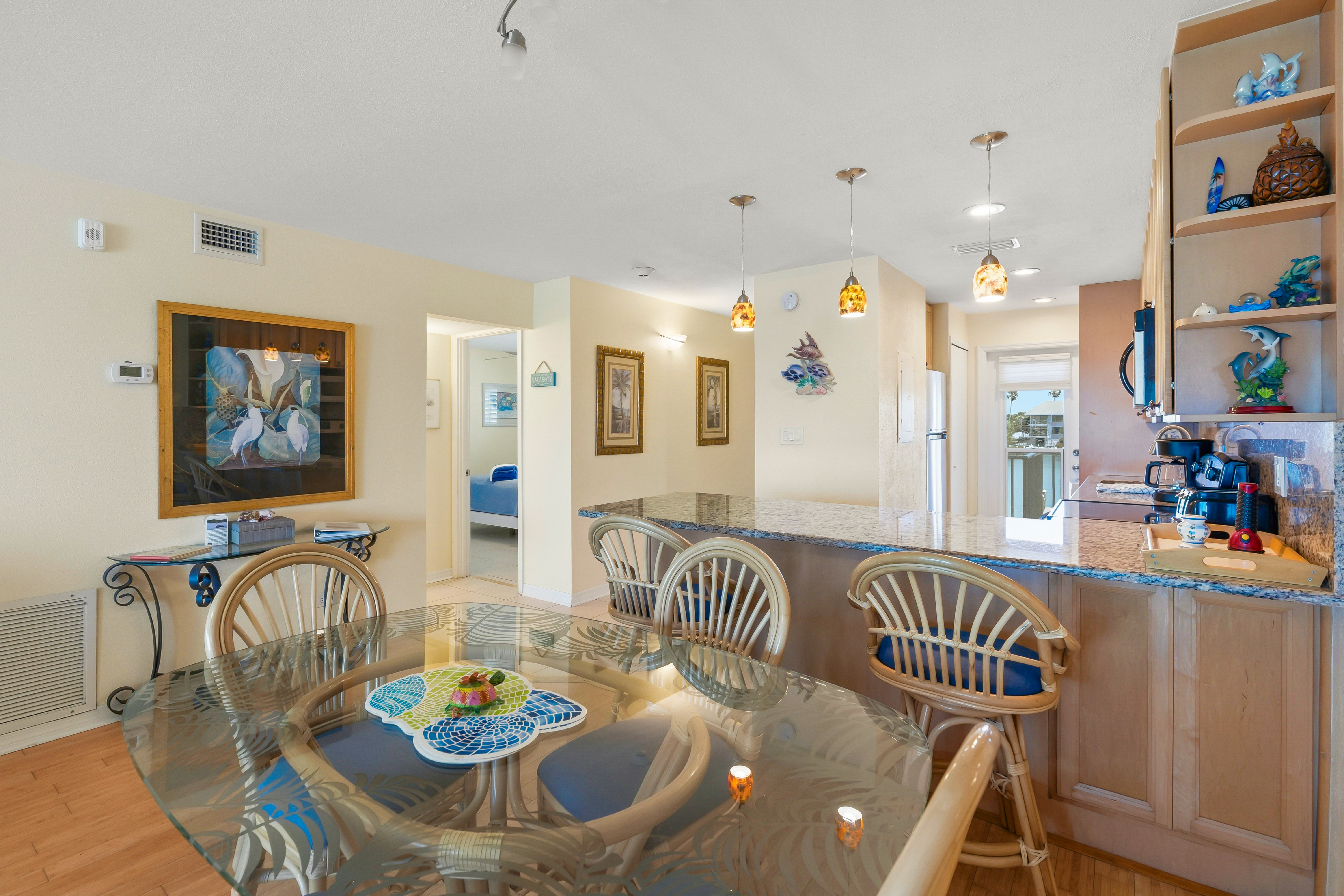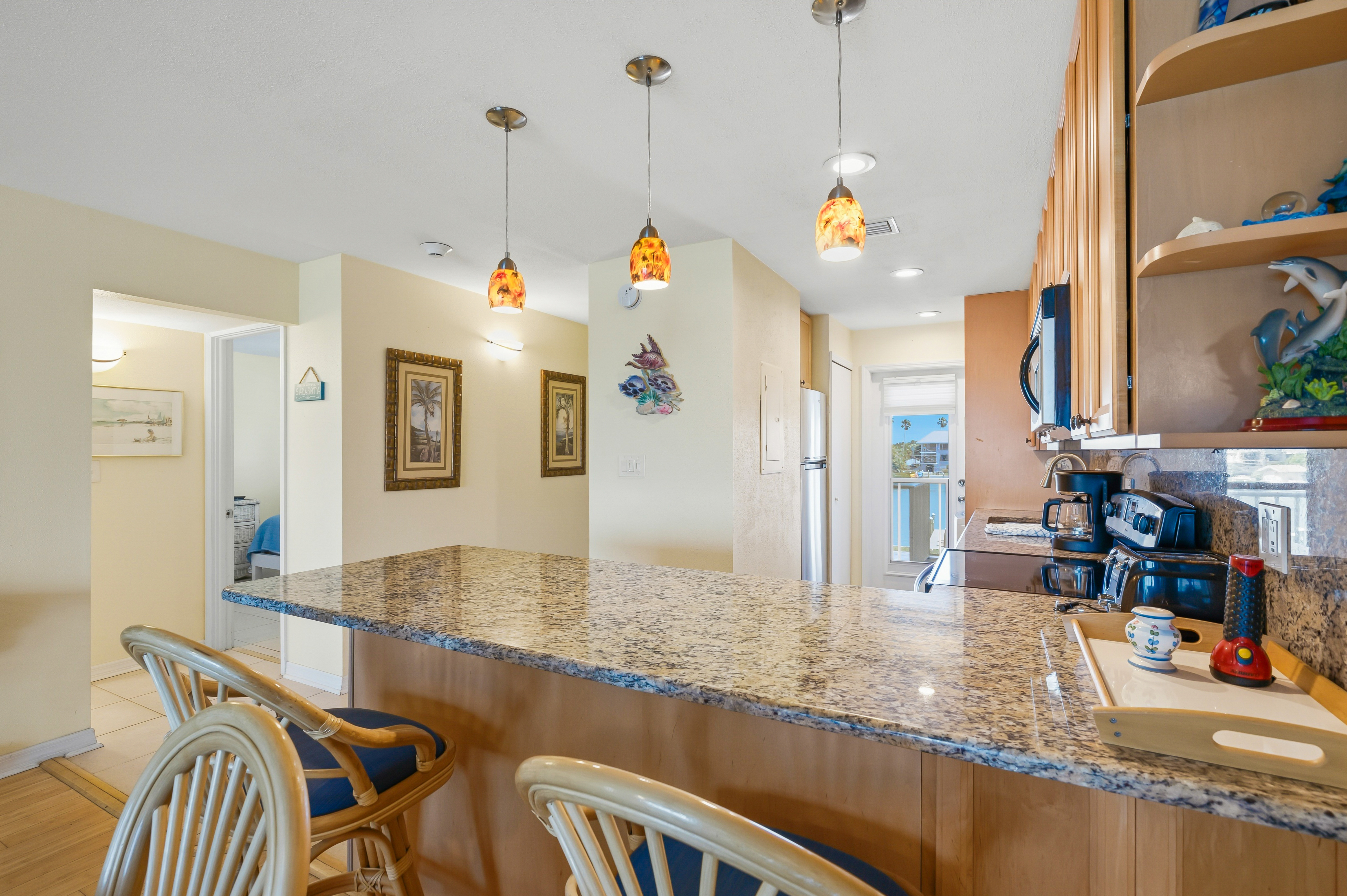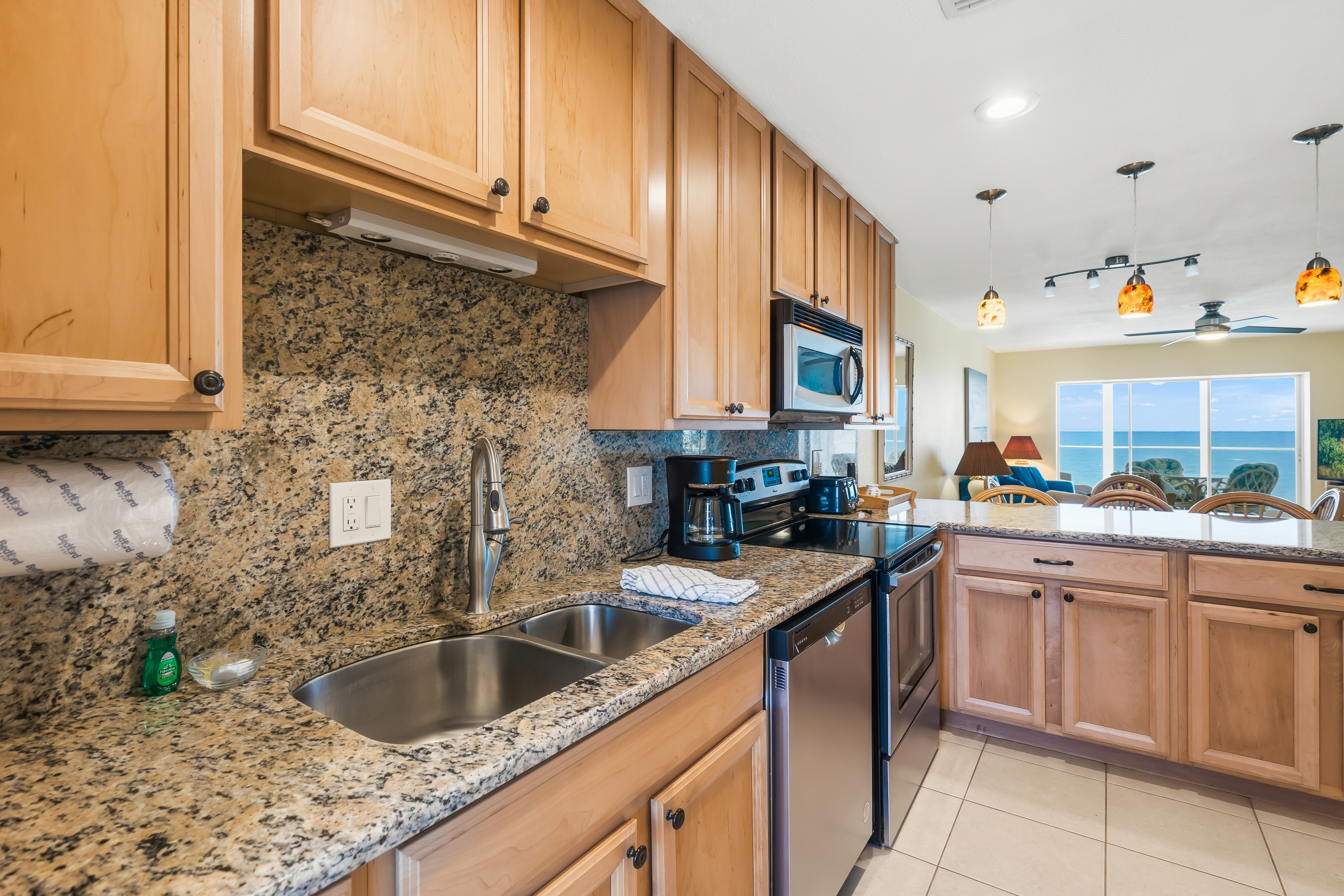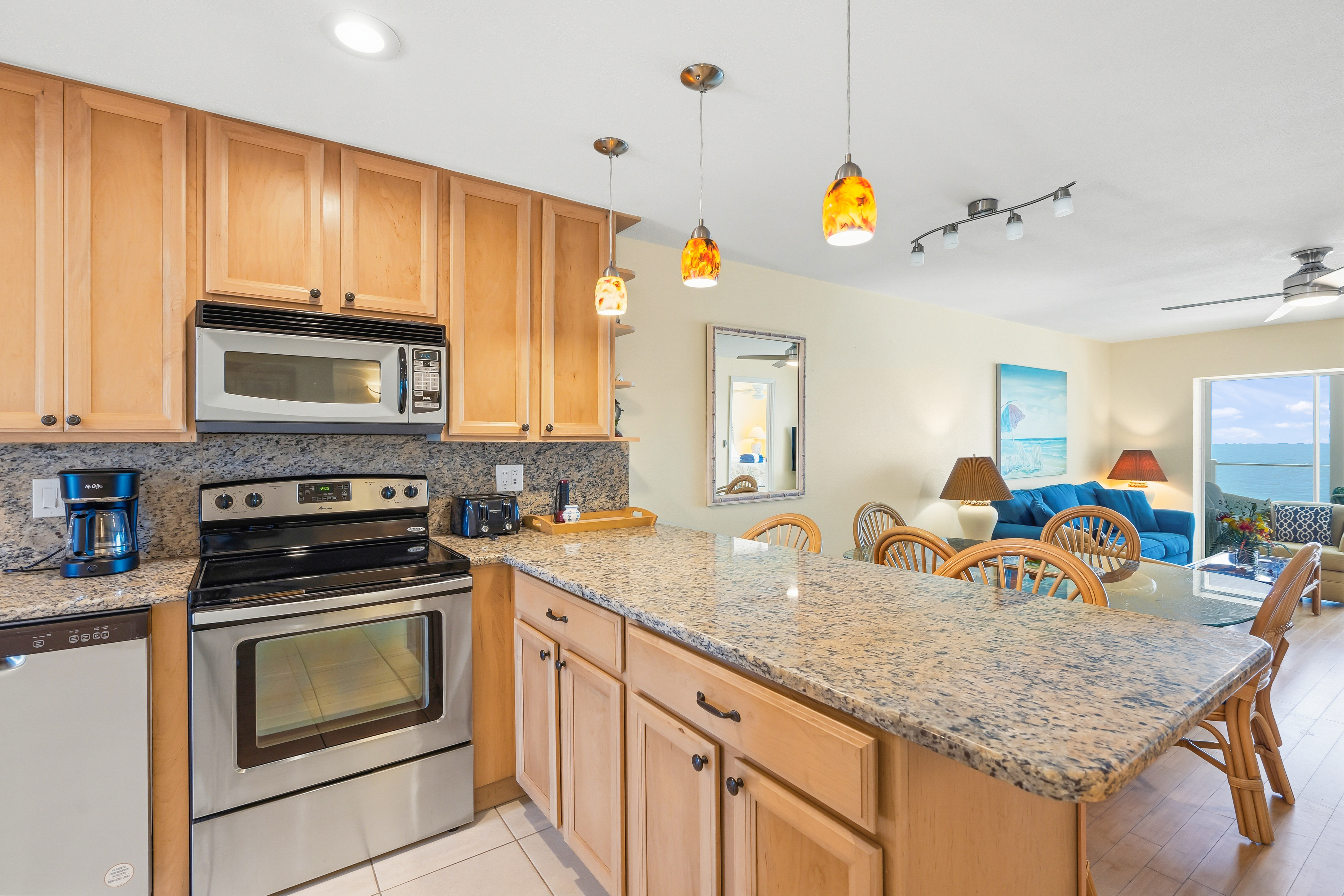 Beautifully remodeled unit with spectacular gulf views from your 2nd floor lanai. Bamboo and tile floors throughout and an updated kitchen fully equipped with granite countertops. Freshly painted with two new remodeled bathrooms. Upgraded Internet XFINITY bundled with three flat screen Smart TV's - with a huge choice of channels and the ability to use your Netflix or other accounts. In-unit phone with unlimited national and international calls. In-unit washer and dryer for your convenience. Easy access to the beach and the swimming pool. We try to provide our guests with all the amenities to have a great vacation!
