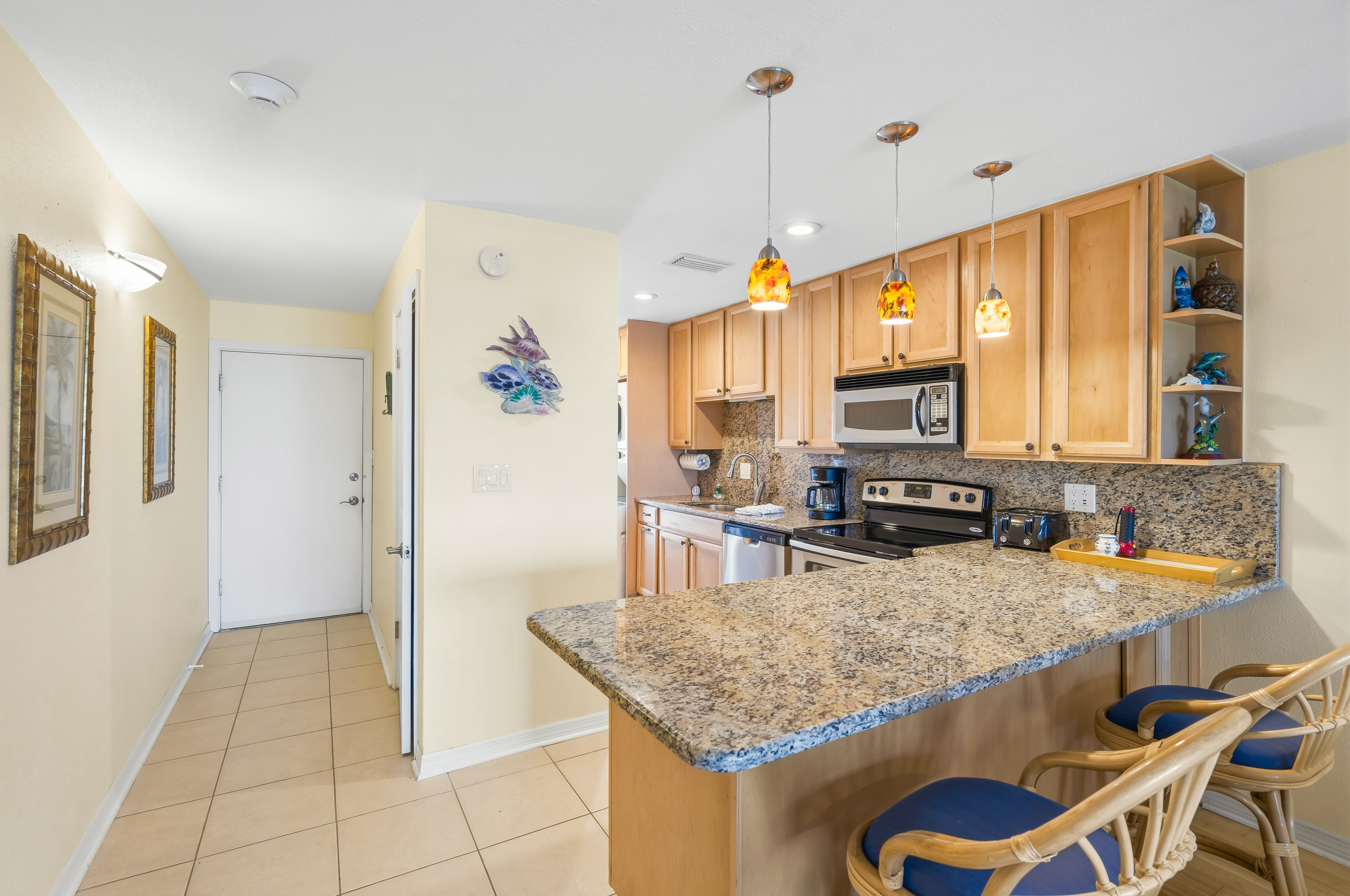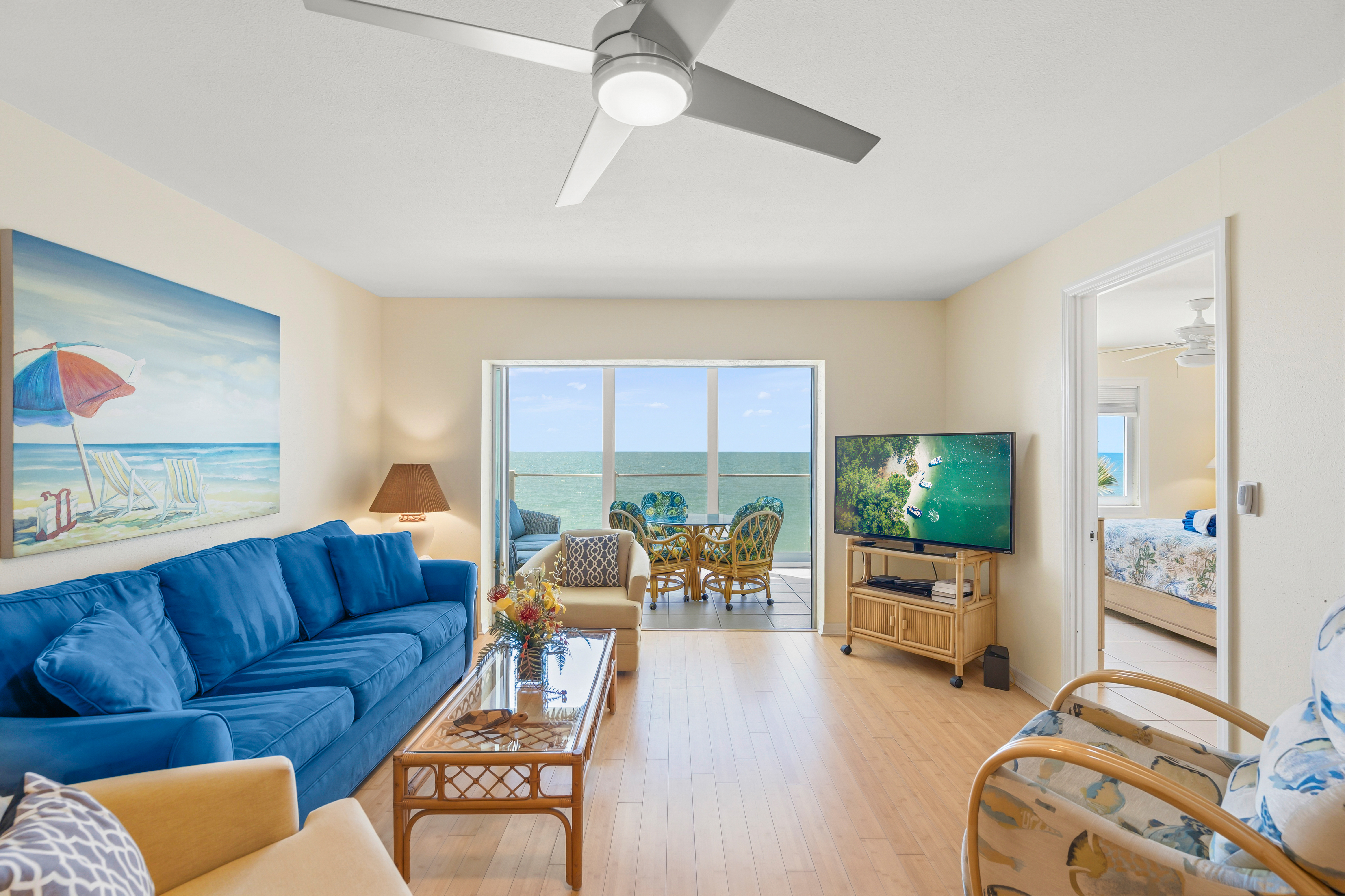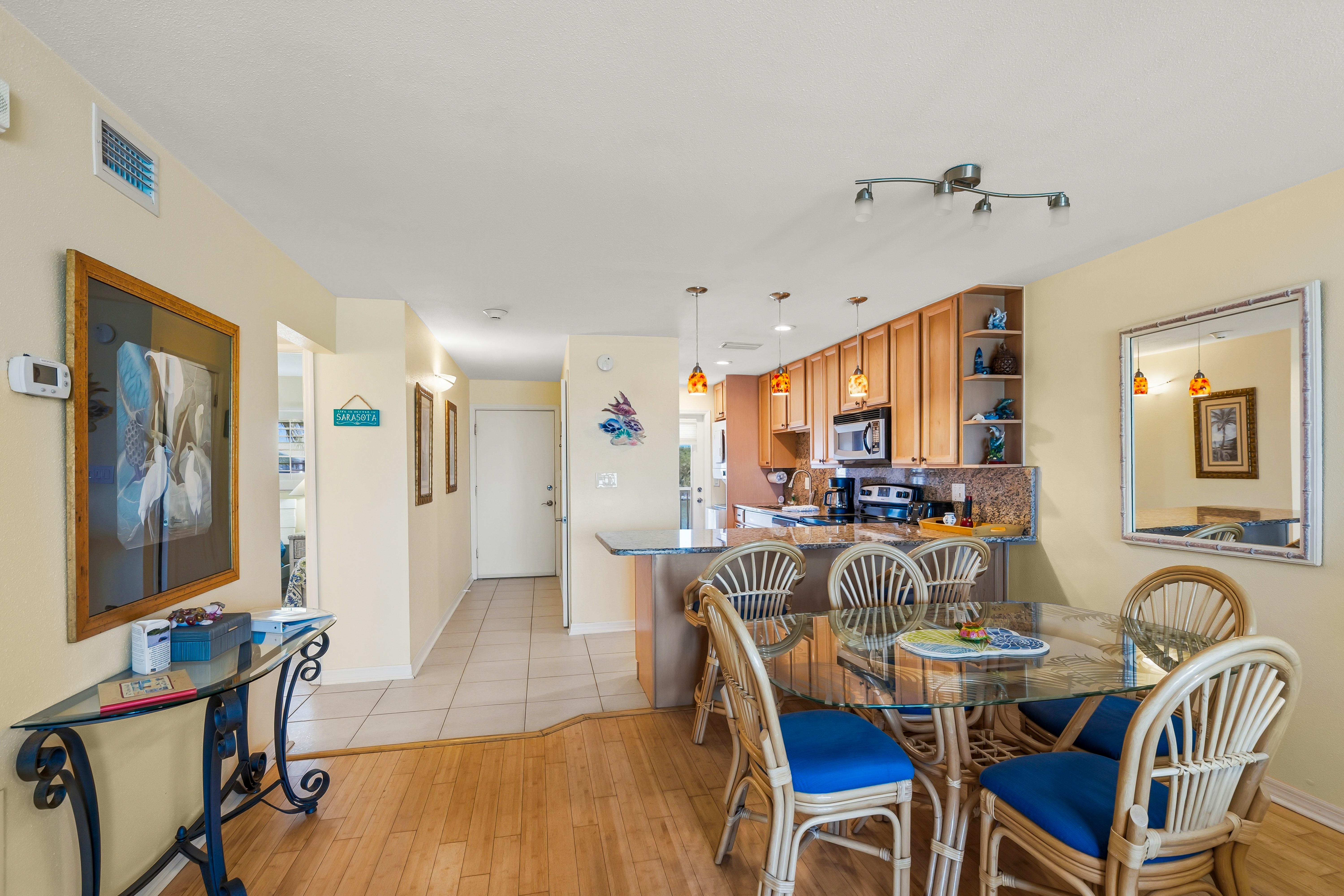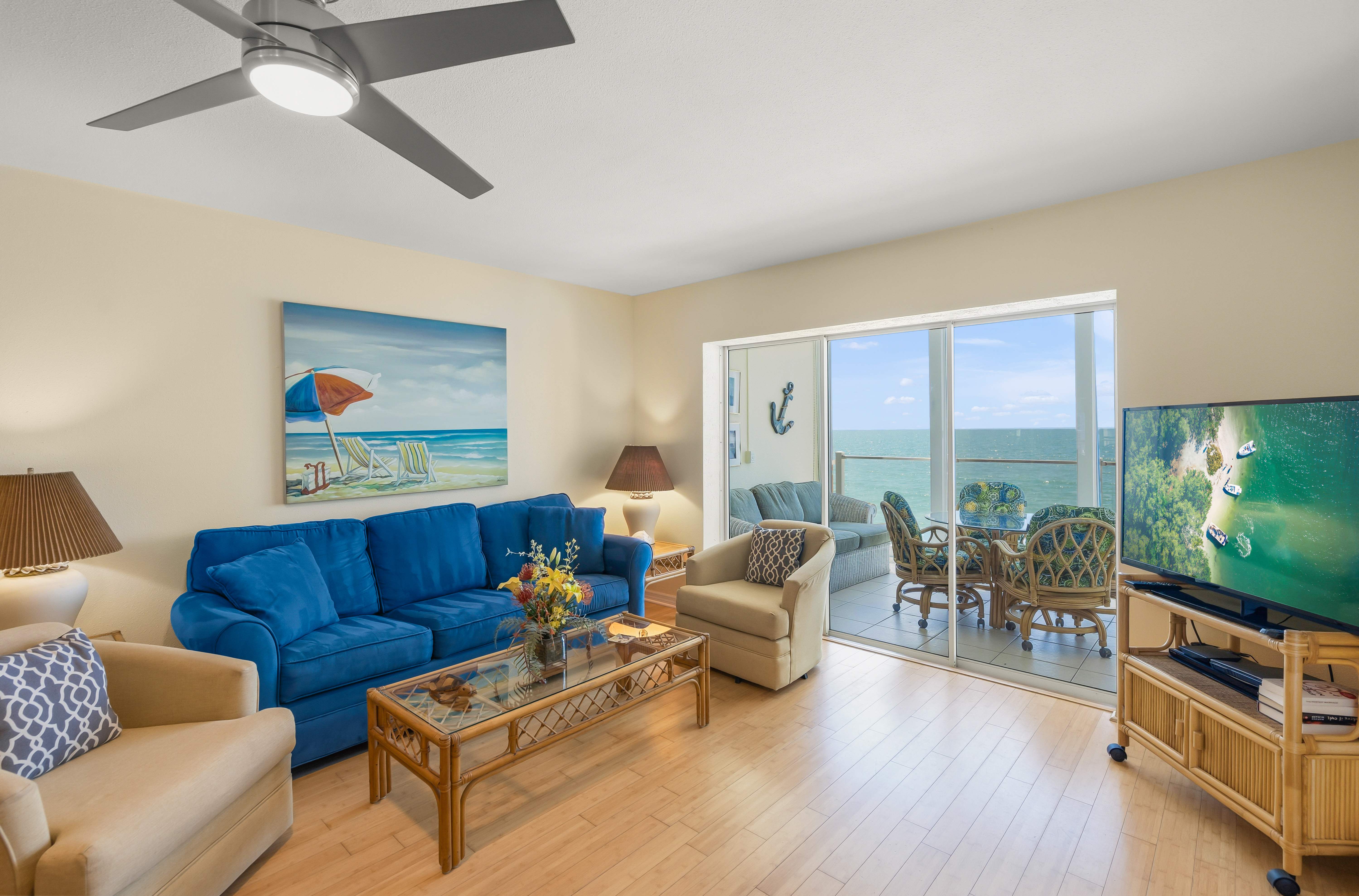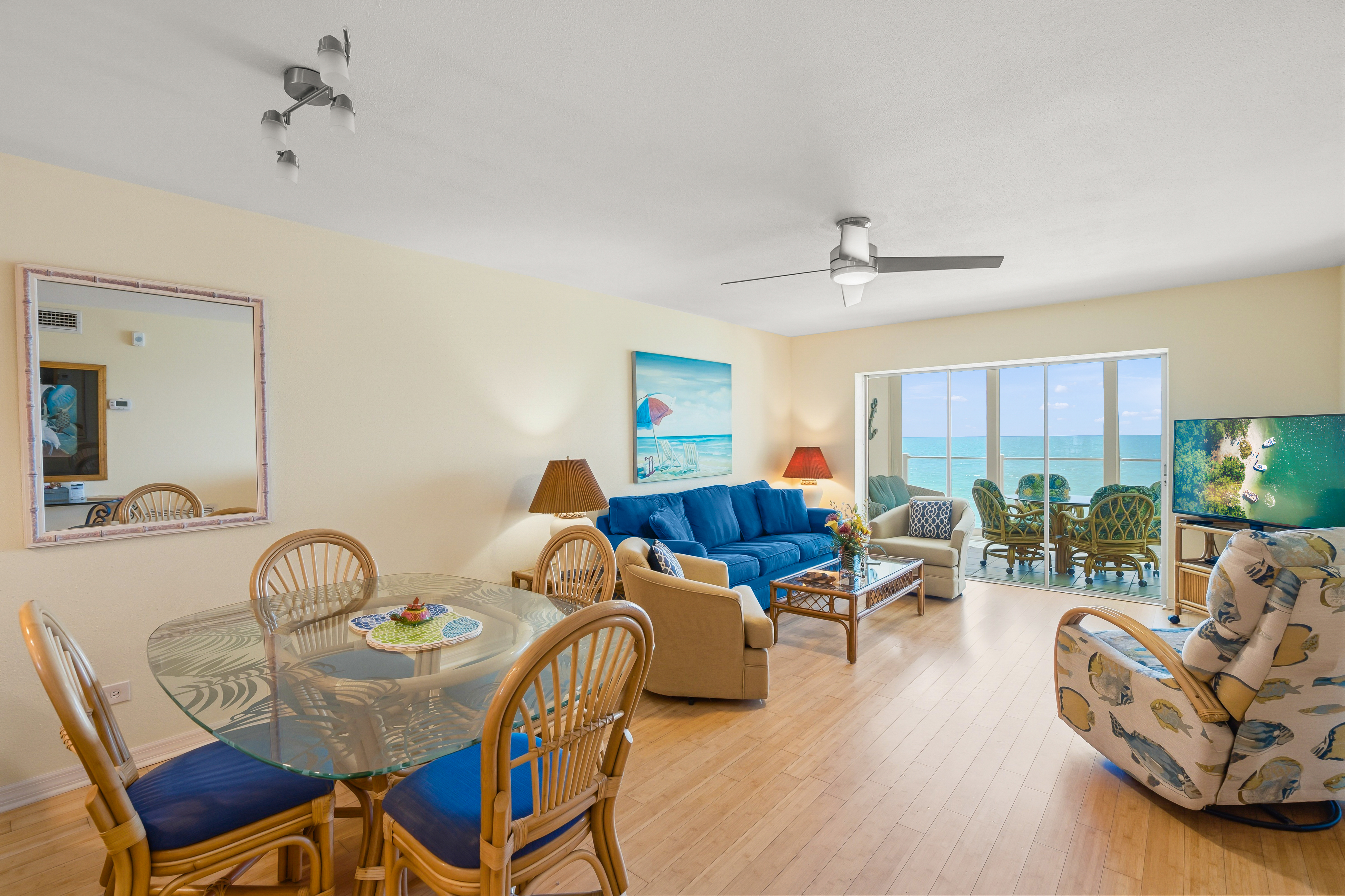 Beautifully remodeled unit with spectacular gulf views from your 2nd floor lanai. Bamboo and tile floors throughout and an updated kitchen fully equipped with granite countertops. Freshly painted with two new remodeled bathrooms. Upgraded Internet XFINITY bundled with three flat screen Smart TV's - with a huge choice of channels and the ability to use your Netflix or other accounts. In-unit phone with unlimited national and international calls. In-unit washer and dryer for your convenience. Easy access to the beach and the swimming pool. We try to provide our guests with all the amenities to have a great vacation!