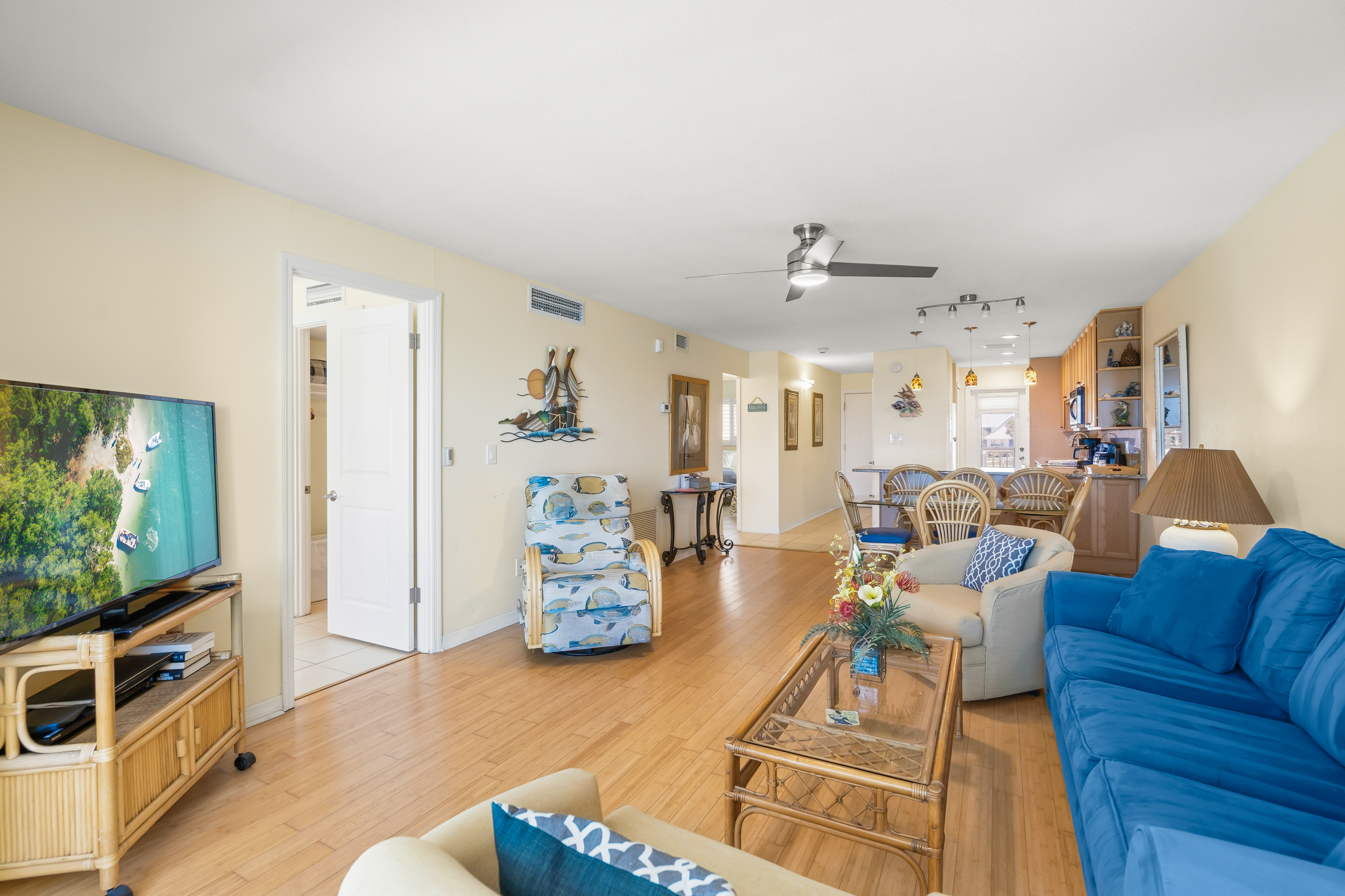 Each unit features cable television, wireless internet access, fully equipped kitchen, a heated community pool, boat slips, kayak launching and assigned parking.
