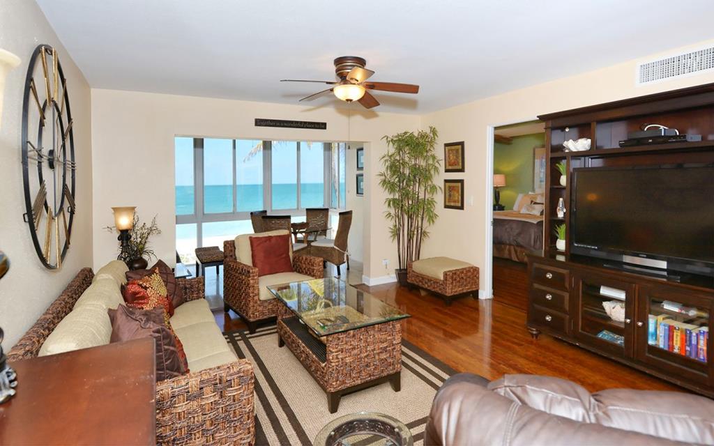 Enjoy your home away from home in beautiful Siesta Key! This great 2-bedroom, 2-bath has everything you need for a wonderful, relaxing vacation. This prime location makes it convenient to get to the beach. Just walk a single flight of stairs (or elevator) and you're on the beach where you can enjoy all of the wildlife Siesta has to offer including playful dolphins, turtles nesting, and beautiful seashells to collect. The condo itself is located on the second floor with easy access to a close elevator. You will enjoy beautiful views from the second floor looking through the floor to ceiling windows on the lanai.