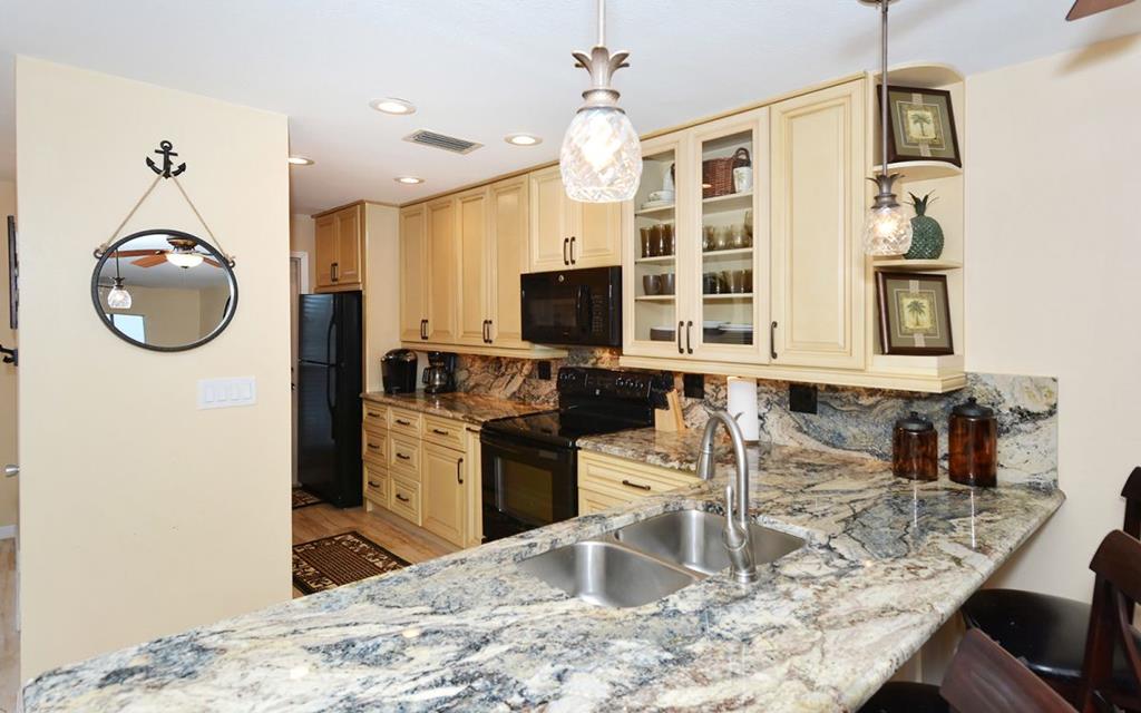 This 2-bedroom, 2-bath condo is fully stocked, and has been recently remodeled. Enjoy upgraded appliances and soft-close cabinets in the kitchen. The master bedroom has a comfortable king-size bed and a beautiful ocean view. The master bathroom has a walk-in shower. For your convenience, there is a washer and dryer located in the kitchen. The second bedroom has a queen-size bed, as well as a twin-over-twin bunk. Additional amenities include, beach toys, chairs, umbrellas and towels. For guests who love to fish, we have fishing poles. You can fish right off the docks, then cook your fish on our new gas grills located by the parking lot.