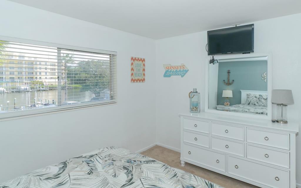 Guests enjoy free boat docks (trailers stored off property), a heated pool, kayak launching, assigned parking, cable TV, WiFi, and a fully equipped kitchen. The rental program provides a starter supply of toilet paper, paper towels, and dish soap.