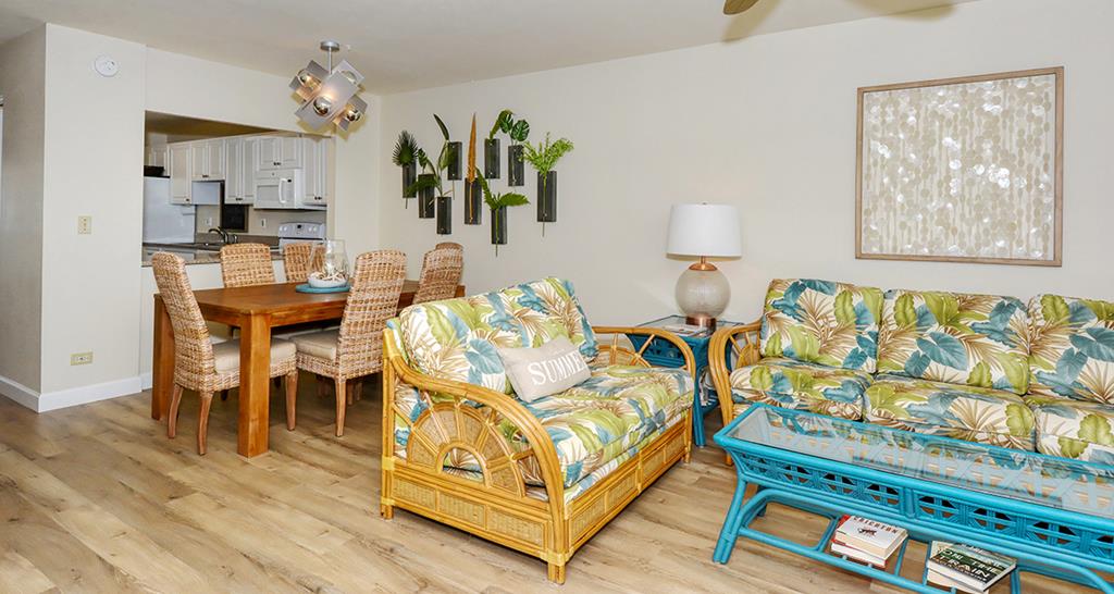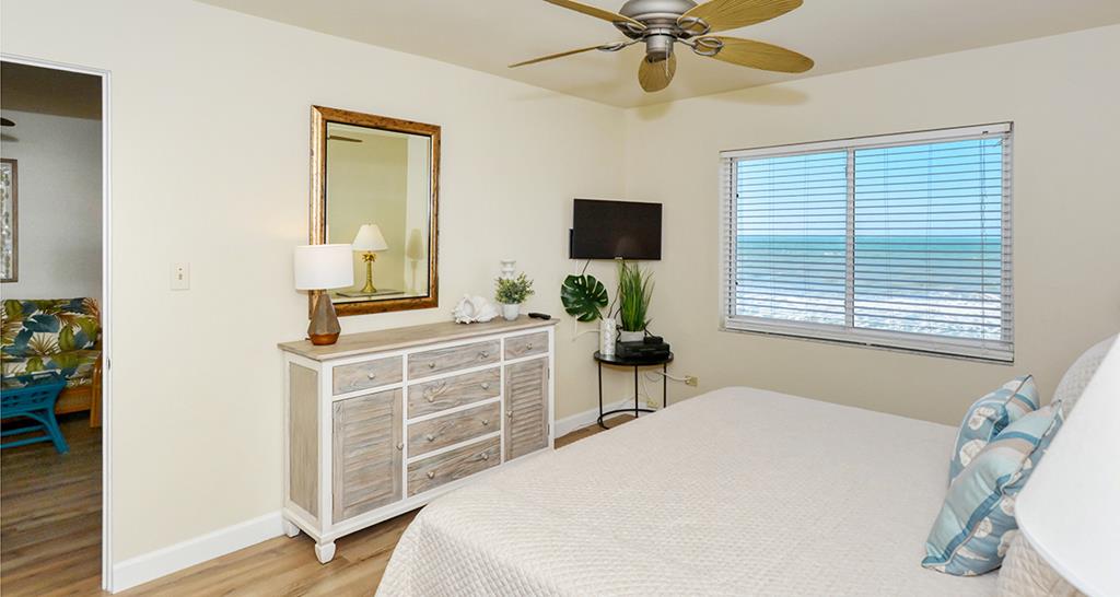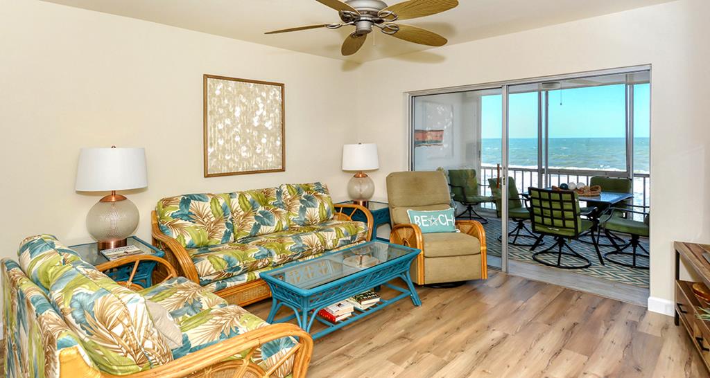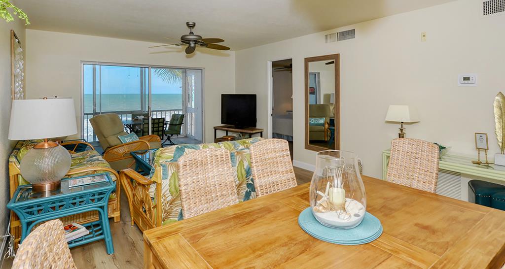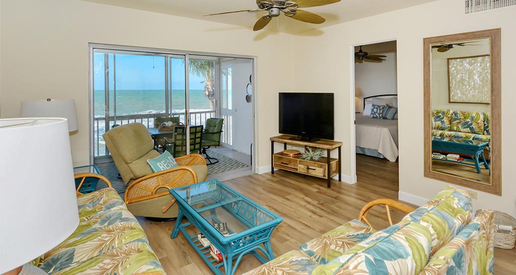 This lovely and colorful 3rd floor unit has an incredible view of the Gulf of America to enjoy with your family members from a very comfortable lanai. New flooring, two newly renovated baths, and flat screen TV's in living room and bedrooms. The kitchen is fully equipped and beach chairs and umbrella are provided. Our unit is convenient to the elevator and laundry (coin operated). We would love to welcome you!