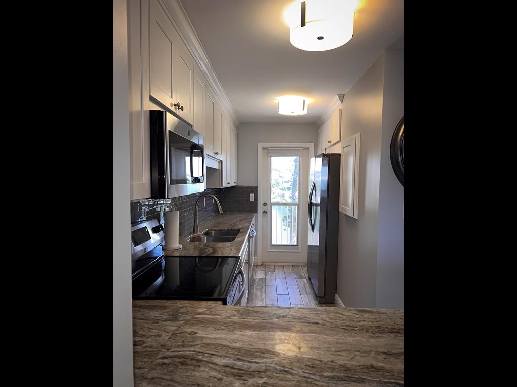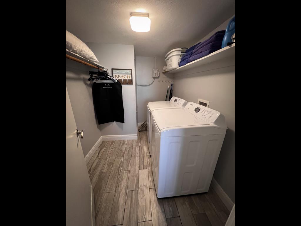 The unit also provides a full sized washer and dryer and gorgeous tile throughout.