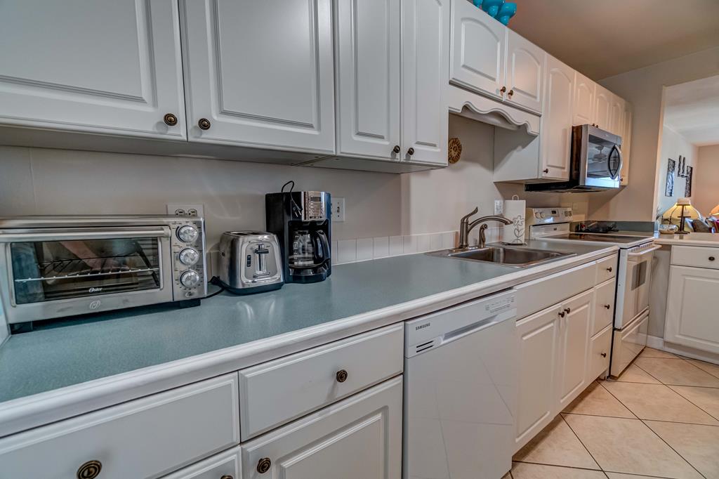 = A cheerful and well-equipped kitchen, with flat glasstop stove, refrigerator with ice maker, offers you every amenity as you prepare meals to enjoy in the separate dining area or your private lanai which overlooks the gulf.